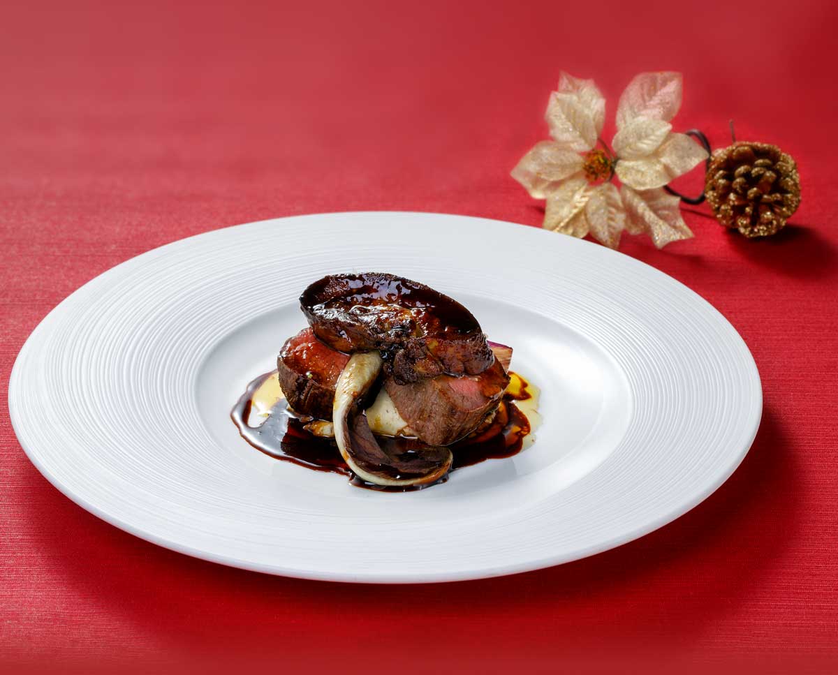 宮崎牛ランプ ハンガリー産ファアグラのソテー 赤ワインソース